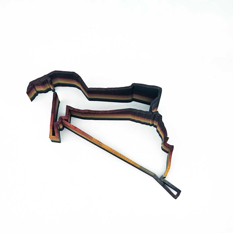 All models (unless by custom request) will be 3D printed using PLA plastic. Please be aware that minor flaws are to be expected from the 3D printing process, especially on the bottom of the model (where they won't be seen). Many products are made using rainbow or color gradient filaments. This means that the color changes along the length of the filament roll and that colors may not be identical to those seen in the pictures. For a better idea of color choices, please see the Color Selection Guide.